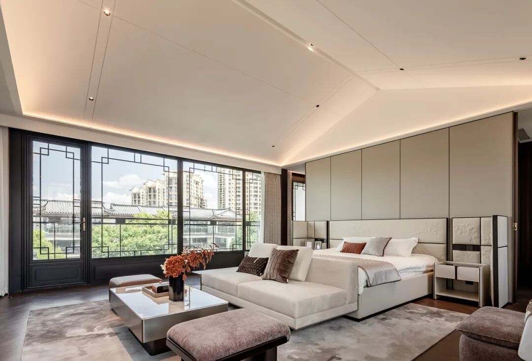 为了实现软装与硬装的无缝衔接,2020年,芘菲投入自有资金建设了生产线。这不仅让软装方案得以在硬装设计阶段就提前介入,形成倒逼优化,更让一些个性化的定制需求得以完美实现,同时牢牢掌握了品质、交期和定价的主动权。这套“研发—设计—智造”一体化的全产业链管控模式,构成了芘菲难以复制的核心壁垒。“有位业主收藏了一批老绣片,想把它们融入家具,团队就把老绣片镶嵌在沙发靠背上,让‘老物件’有了新的生命力。这就是我们长久秉承的观点,软装不是‘后期搭配’,而是‘前期融入’,从设计之初就考虑软装风格,才能让整个家的氛围更统一。”